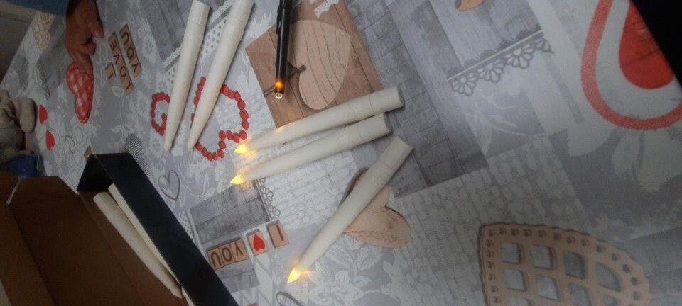 Insert in AAA battery into each candle.